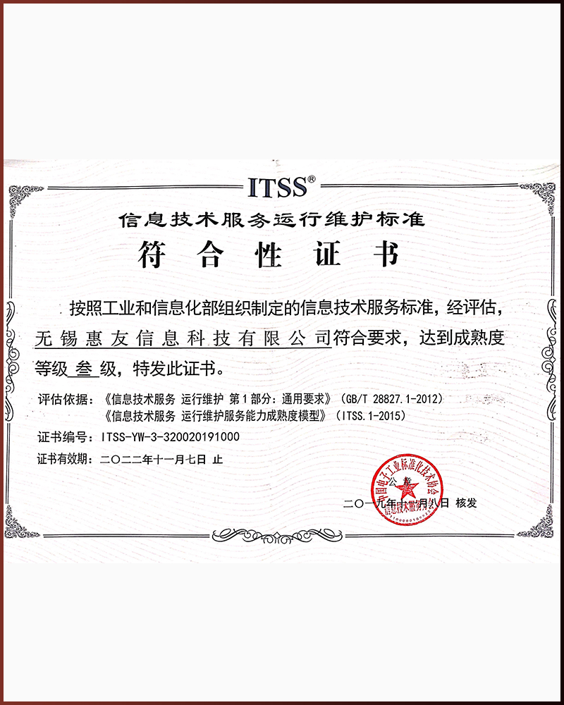 信息技術(shù)服務(wù)運行維護標準符合性證書