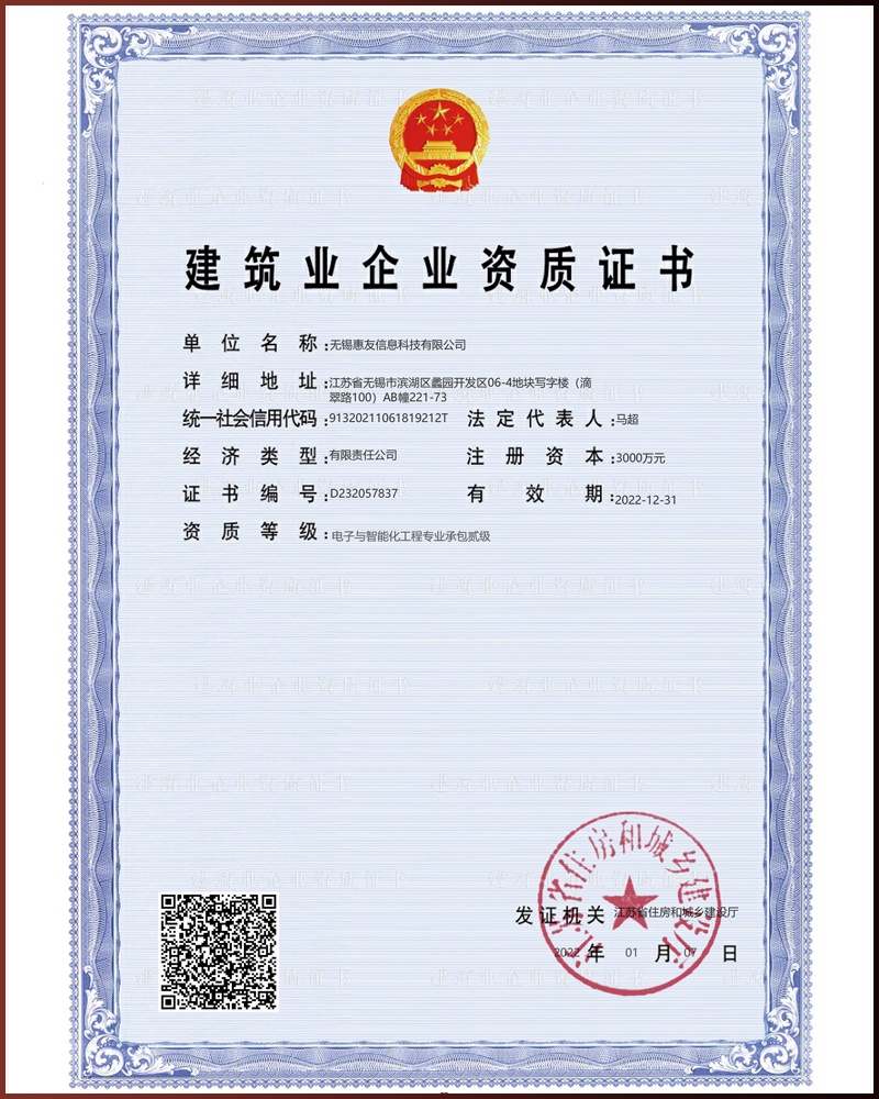 智能化工程專業(yè)承包資質(zhì)證書