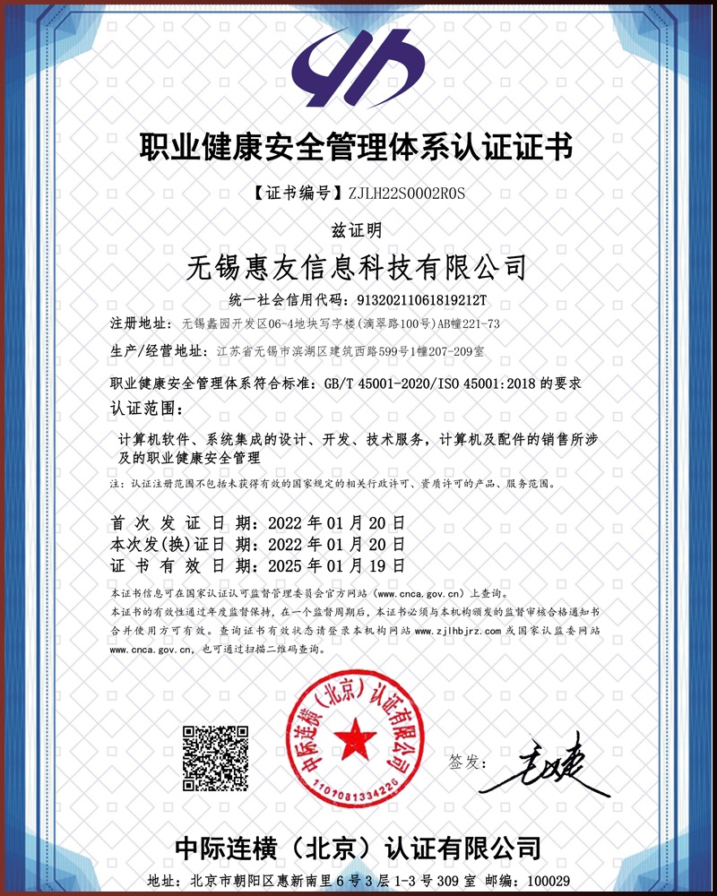 職業(yè)健康安全管理體系認證證書[OHSMS]