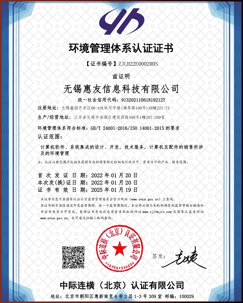 環(huán)境管理體系認證證書[EMS]