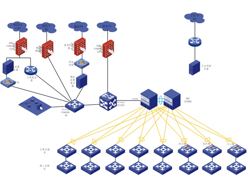 計算機網(wǎng)絡(luò)系統(tǒng)主要考慮其成熟性和先進(jìn)性,網(wǎng)絡(luò)主干采用千兆光纖主干,水平干線為百兆速率交換。配線間交換機設(shè)備利用堆疊方式或級聯(lián)方式聯(lián)接成一體。整個網(wǎng)絡(luò)可劃分為多個虛擬子網(wǎng),可以有效控制網(wǎng)絡(luò)流量。?